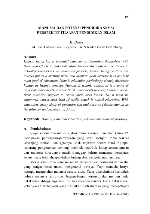 Pdf Manusia Dan Potensi Pendidikannya Perspektif Filsafat Pendidikan Islam Ta Dib Jurnal Pendidikan Islam Academia Edu